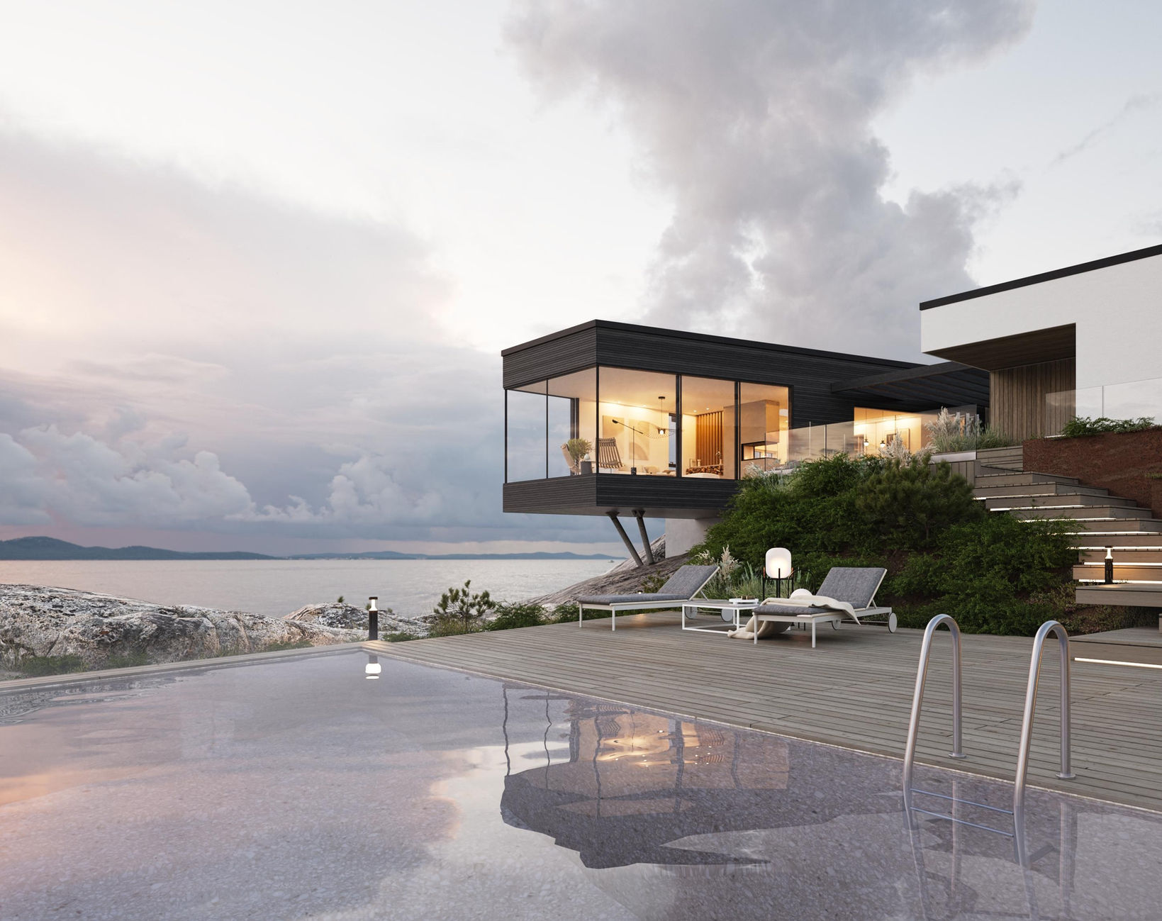 Segla is the perfect home for a lifetime of comfort. This 275 m² single-level residence is designed for effortless living, both now and in the future. It offers spacious living areas with elegant details, a luxurious master suite, a private gym, and a relaxing sauna. Outside, inviting spaces provide the perfect spot to unwind and enjoy the evening sun. To help future homeowners visualize their dream home, Vestlandshus needed digital representations of Segla before construction, ensuring it could showcase its potential.